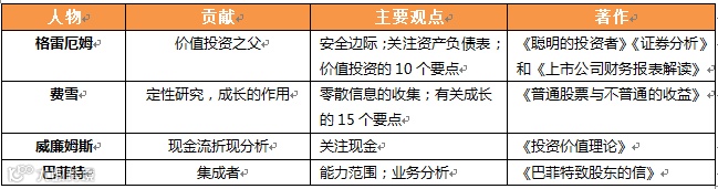 格雷厄姆和戴维·多德合著的《证券分析》则更详尽深入的阐明了价值型投资策略的架构,强调了资产负债表(资产和负债)对决定企业价值的重要性。其他作者关于该经典主题的著作中还会强调利润表(营收和开销)分析对估值的重要性。