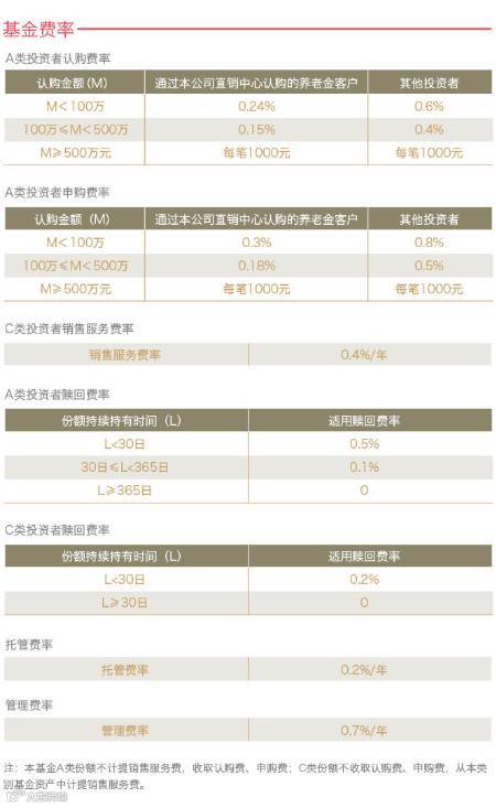 风险收益特征:本基金为债券型基金,属于证券投资基金中的较低风险品种,其预期风险与预期收益高于货币市场基金,低于混合型基金和股票型基金。