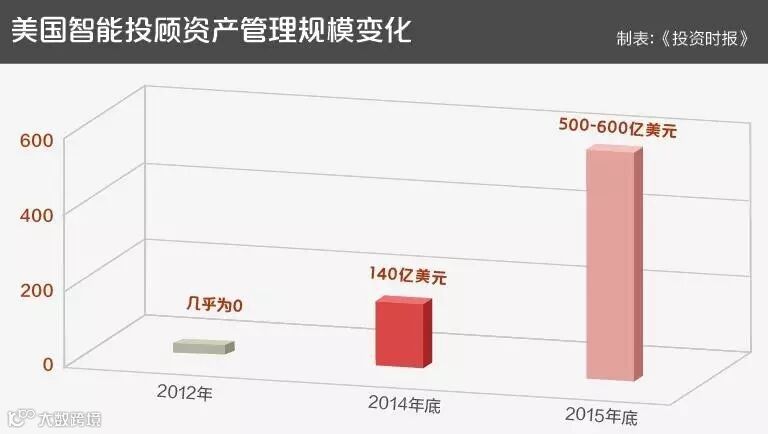 除了Betterment和Wealthfront,又涌现了Personal Capital、Schwab Intelligent Portfolio等企业,行业规模也迅速攀升。花旗报告指出,2015年底智能投顾管理的资产规模已达187亿美元。未来十年,将至5万亿美元。