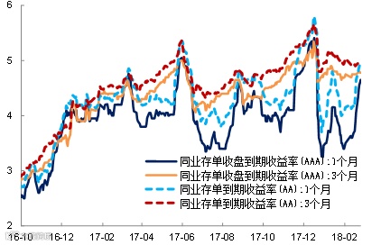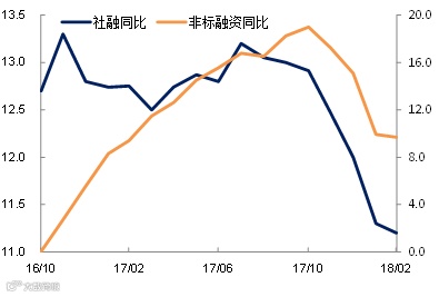 近期7号文更多的是协助表外回表,为等待落地的资管新规保驾护航。从发布的数据来看,PMI连续3月回落;外贸数据从季调来看整体稳健,不过1-2月出口季调均值较去年12月有所回落,这点与PMI新出口订单走势一致,不过一季度外贸数据波动较大,有必要结合一季度整体季调增速来看;通胀CPI存在超预期,主因今年春节靠后、统计局暂停发布旬度数据、食品分项与高频数据节后明显回落的走势有所背离,不过整体符合2月CPI为全年高点的预判,通胀对债市暂不构成压力;金融数据整体平稳,1-2月社融均值较同期有所回落,表外回表趋势明显,非标融资萎缩,拖累社融增速进一步回落。