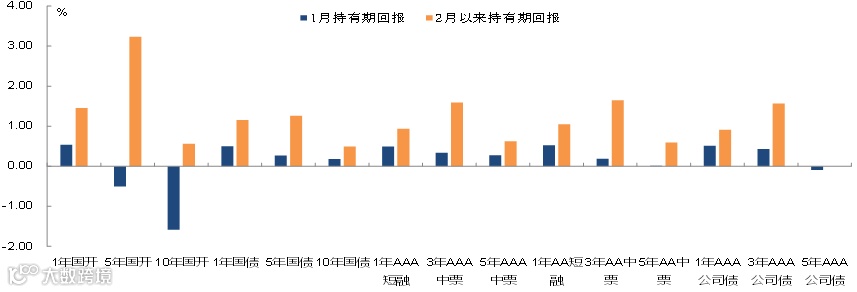 ➤较1月来看,2月以来主要券种持有期回报有明显增加,信用债方面3Y品种持有期回报最大。