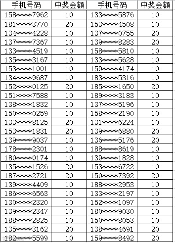 3、中奖金额将于每周五以话费的形式发放到您的中奖手机,届时敬请留意短信