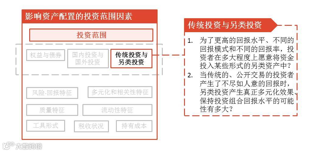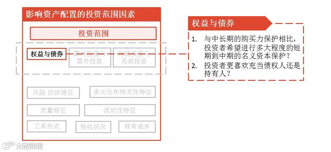 这些分析工具中所涉及的问题是为了帮助投资者评估特定资产的特征是否与投资者的目标和需求以及预期的投资前景相吻合。其中,权益与债券、国内投资与国外投资,以及传统投资与另类投资,这三方面与资产配置中的三个基本决策相对应。