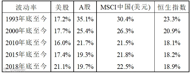 表2:中美股票市场波动率对比