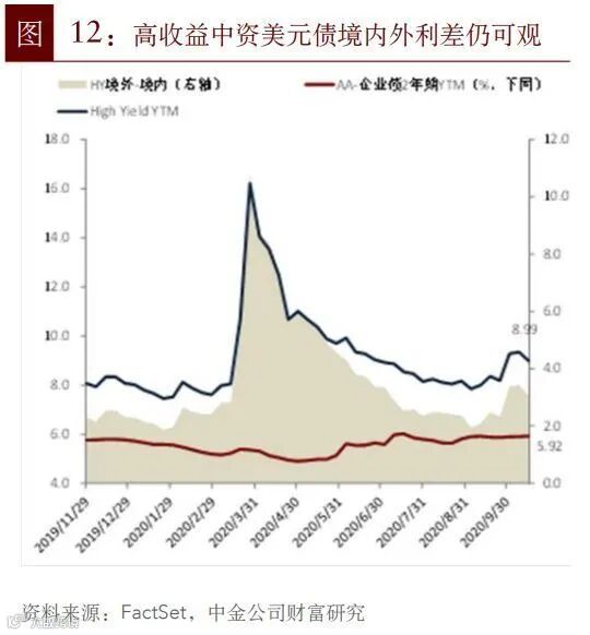 适度低配国内和海外的投资级固收产品,中资高收益产品机会更大。当前,国内外无风险利率仍处低位。国内债券利率虽然经历了一定的上升,但考虑到信贷和经济活动上升的趋势,四季度利率仍存在继续上行的风险,对投资级债券的预期回报并不高。唯一比较适合的是高收益债,目前国内的高收益债利差保护不足。相比之下,中资美元高收益债仍有更高的利差补偿,是不错的收益来源。