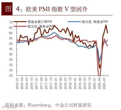 欧美股市在疫情之下保持上涨。三季度美日欧股指标普500、日经225和斯托克600分别上涨8.5%、4.0%和0.3%,相对上半年涨幅4.1%/-2.0%/-12.4%有明显好转。尽管欧美疫情尚未完全得到控制,在西欧部分国家第二波疫情的每日新增感染人数甚至创下了新高,但由于整体医疗体系的准备更加充分,并未造成第二波封锁,经济活动总体上延续了逐步恢复的过程。同时全球新冠疫苗研制成功的可能性在升高,为经济进一步恢复提供保障,这使得经济复苏的预期未受到新冠疫情再度上升的影响。