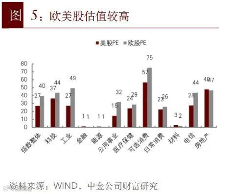 此外,国内科技板块在今年涨幅较大、估值偏高,但在数字经济和国产化替代驱动下,我们看好龙头企业2020年盈利有望达预期。在此前提下,电子和计算机2020年一致预期估值PE将降至36/49倍,和国外科技行业估值相当,仍有较高投资价值。