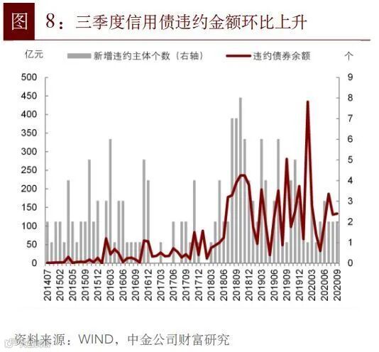 提防违约风险抬头,建议继续配置相对安全的高评级债。三季度信用债违约共计36起,违约金额约420亿,环比二季度均回升,而新增违约主体家数基本持平,反映出已违约主体继续违约的现象仍比较突出。当前经济尚未全面恢复至疫情前的水平,而货币政策坚持不搞“大水漫灌”,相对克制,部分受疫情影响较大、经营风险较高的主体违约风险仍不容忽视。