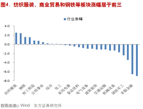 从行业板块表现来看,纺织服装、商业贸易和钢铁等涨幅居于前三,分别涨2.56%、2.43%和1.57%。采掘、非银金融和银行等涨幅排在倒数,分别下跌是3.42%、6.54%和6.93%。主题上,智能电视、互联网金融、体育和大数据等表现最为活跃,分别上涨6.32%、5.16%、3.53%和3.14%。我们认为,当前市场的配置以防御为主,低估值有业绩的股票是当前首选。市场风险偏好在下降,短期市场可能继续回调,但跌幅不会太深,我们预期市场波动区间在3000-3400之间。主题上,我们建议关注体育、一路一带、国家安全和工业4.0,重点还是之前一直建议的上海本地股。