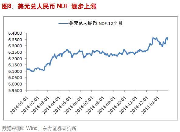 第二、人民币连续贬值是由于“季节性”因素导致的可能性比较大,主要跟央行扩大人民币浮动区间有关,这与去年是相近的。去年2月份,人民币也出现过类似贬值。实际上,央行推进人民币国际化,进行汇率市场化,扩大人民币浮动区间往往需要根据市场需求变化,此轮人民币贬值主要是在新的国际环境下,市场的自发行为促发,央行根据市场需求更多扮演了顺水推舟的角色,我们预期人民币浮动区间有可能会进一步扩大。与2014年初伴随人民币兑美元贬值货币市场利率出现明显下行不同的是,近期市场利率水平整体较不稳定,1月份利率水平甚至明显高于2014年11月的水平。
