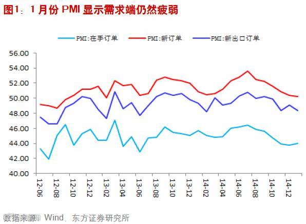 1月份官方PMI回落至49.8%,再次低于预期,也是2012年10月以来首次低于荣枯线。分项数据来看,需求端新订单、新出口订单和采购量指数均环比下降,但在手订单环比上升。库存状况来看,原材料库存环比下降,而产成品库存则上升,生产指数环比回落。显然,企业仍以去库存为主。1月份官方PMI数据显示经济状况继续恶化,然而需要注意的是今年春节时间非常迟,季节性的干扰因素必须考虑到。不过,我们还是认为实体经济仍然比较困难。即使如此,目前降准降息的信号并不十分强烈。首先,央行重启逆回购;其次,人民币汇率贬值的背景下,降息可能进一步加大汇率贬值预期;最后,总理曾经的表态中国没有实行“大水漫灌”式的强刺激,没有放松银根和扩大赤字,而是强力推改革。