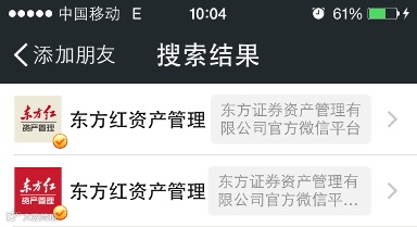 1、搜索“东方红资产管理”,一键关注服务号(dfh_zcgl)、订阅号(dfhzcgl)