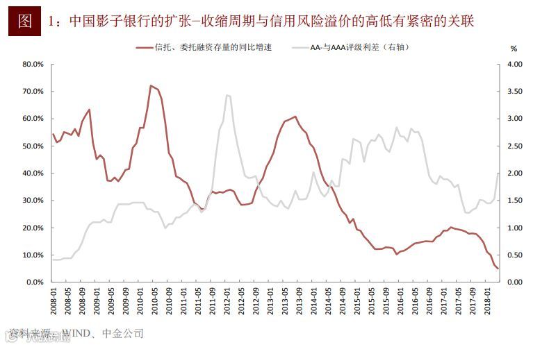 次贷危机以来,信用风险周期与非标融资有密切的关联。