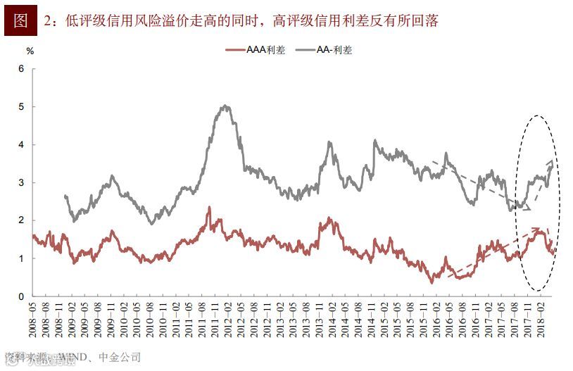 未来几年将是我国社会融资的结构性调整时期,非标融资逐渐淡出历史舞台。失去了这一融资渠道之后,低资质主体能否获得银行和债市的信贷支持,目前看还有很大的不确定性,再融资风险很可能居高不下。再加上刚性兑付这一最后的防线逐渐消解,债市投资者已经开始审视相关风险。低评级信用风险溢价逐渐攀升,进一步增加低评级主体的融资成本。投资者应控制、规避低评级债券的信用风险敞口。同时,对非标债权如信托产品等,投资者也应充分认识融资环境的变化,对底层资产的信用资质应更为审慎,不可掉以轻心。