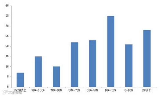 定增规模这么牛,收益率咋样捏?小编找来了2013年3月6日-2014年12月5日期间解禁的161只标的,计算出了各只定增的到期收益率,得出了以下几个关键数据: