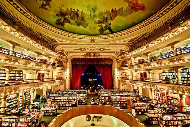 这是一间由剧院改造的书店,店里的每个角落都装点着令人屏息的艺术细节,比如意大利的壁画,红色的窗帘,以及华丽的雕塑。当你在书店浏览的时候,后院还有现场的钢琴演奏。