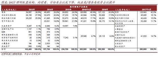 非标投资受限于期限错配限制,银行理财配置结构将发生变化,预计产品久期逐渐拉长。我们认为,征求意见稿对标准债权进行了明确定义,同时明确期限错配,“资产管理产品直接或者间接投资于非标准化债权类资产的,非标准化债权类资产的终止日不得晚于封闭式资产管理产品的到期日或者开放式资产管理产品的最近一次开放日”。目前银行理财产品平均期限为3-4个月,难以匹配期限较长的非标资产。向前看,我们预计,非标投资类占比下降,权益类/债券类资产占比提升,产品久期逐渐拉长。