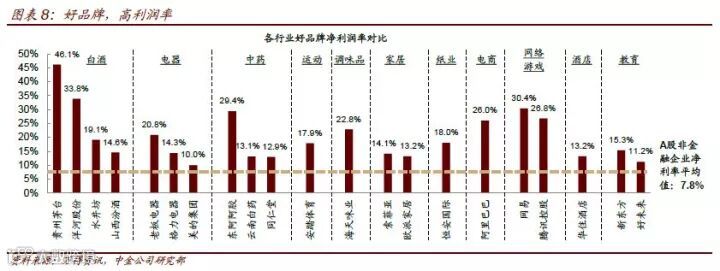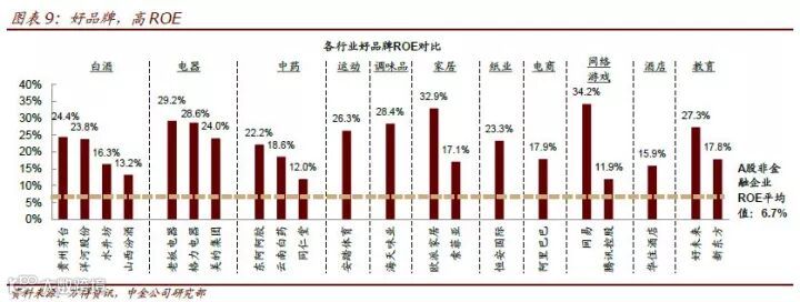 茅台高于其他白酒的定价和毛利率,格力、美的、海尔相对于家电零售渠道的利润率提升趋势,各优秀品牌能够达到百分之十几甚至百分之二十多的ROE(净资产收益率)、净利润率,这些都是品牌优势的强大力证。