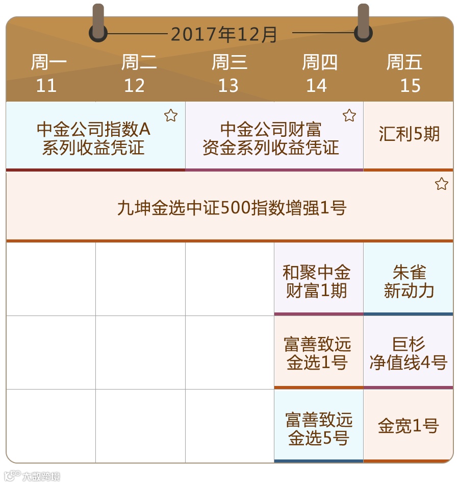 开放日历 | 一周产品精选 (12.11-12.15) 中金财富市场活动