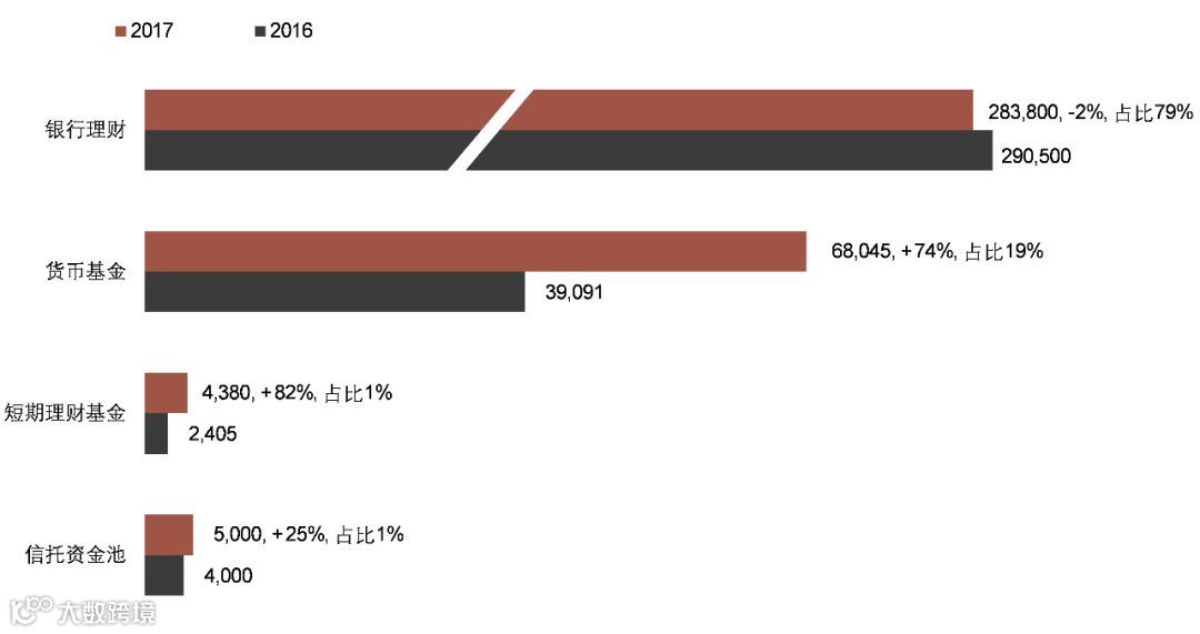 图 1:2017年现金管理市场主要产品规模结构及增速