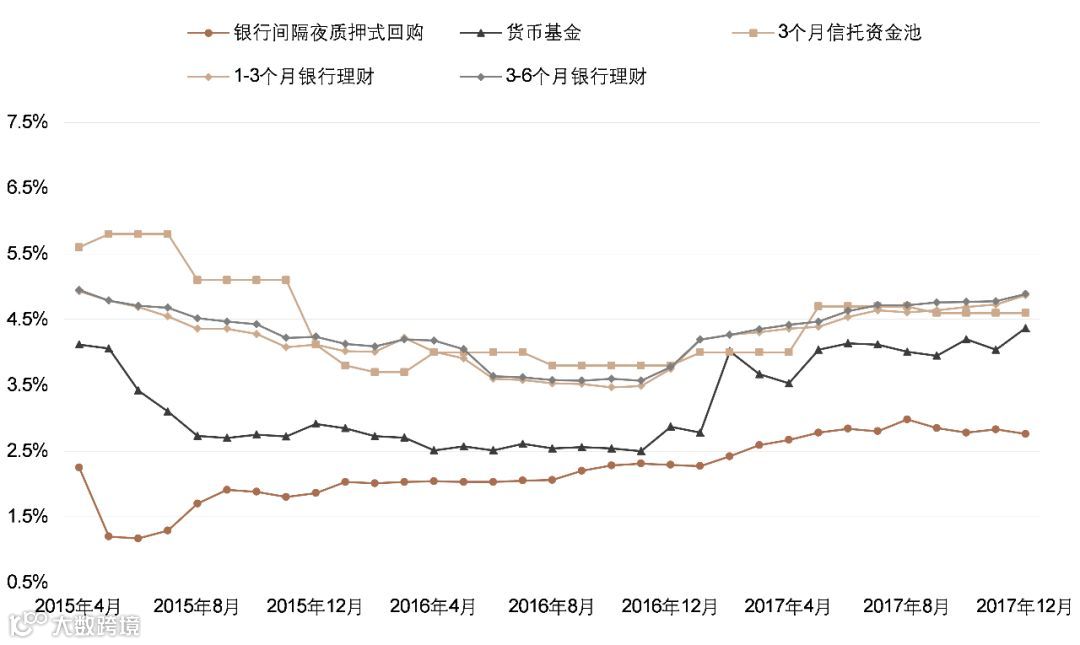 图 2:2017年现金管理产品代表品种月平均收益率走势