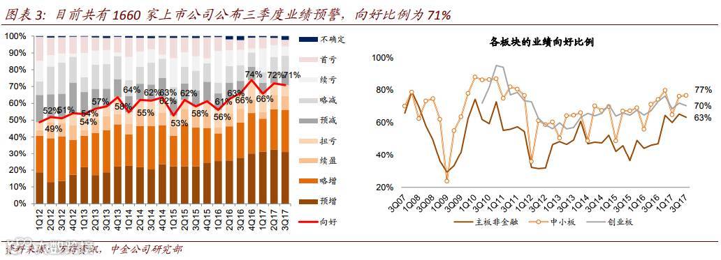 截至10月15日创业板三季度业绩预告基本披露结束(686家公司中仅2家尚未披露),可比口径下前三季度增速预警区间为[1%,15%],扣除温氏及乐视后为[18%,34%],持平略好于今年上半年(上半年创业板整体以及扣除温氏/乐视后的业绩增速分别为5%和25%)。