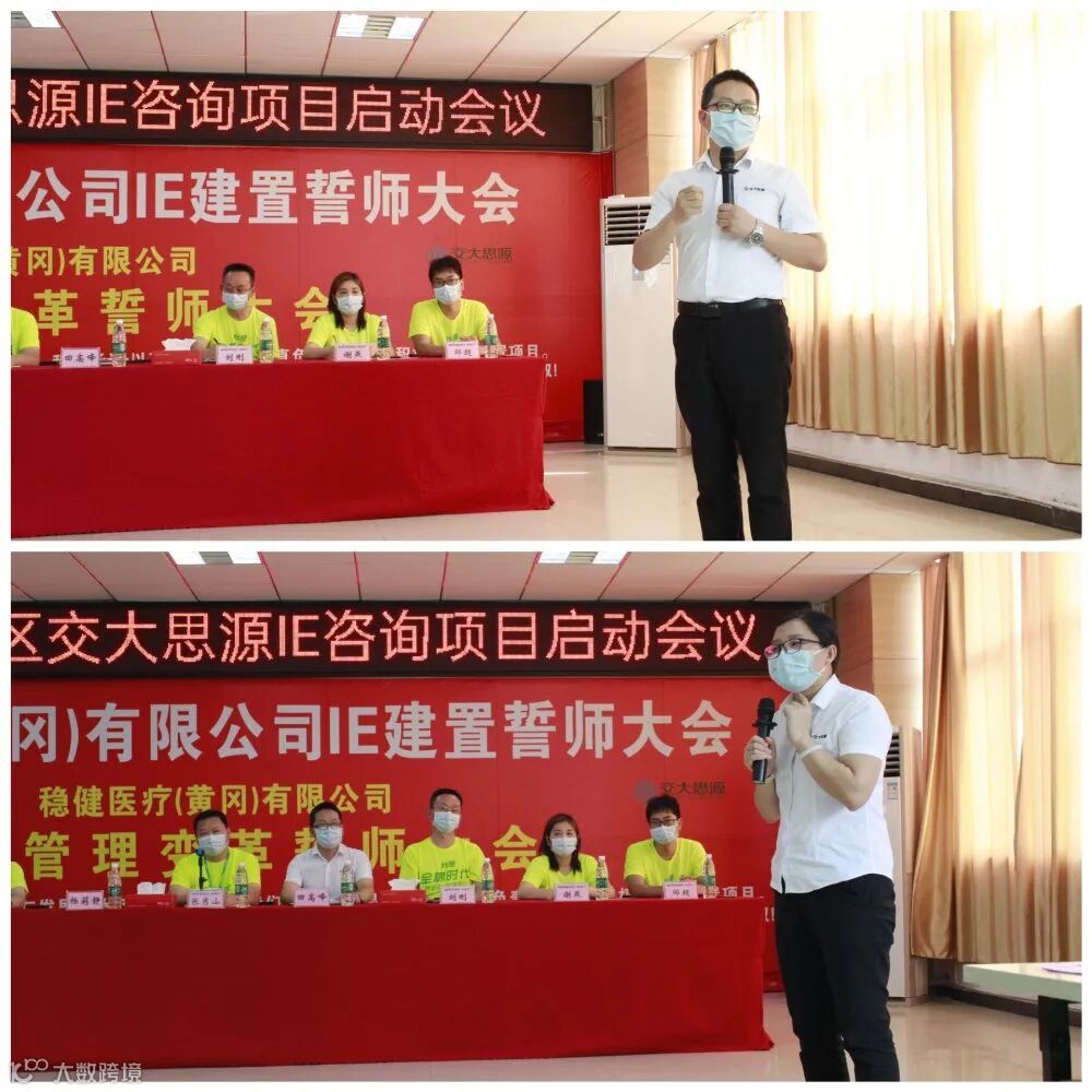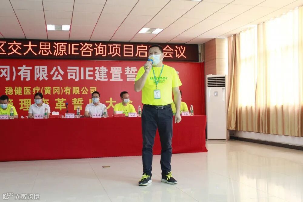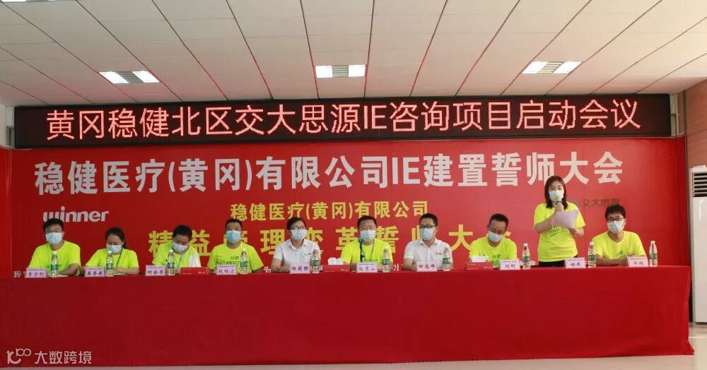 2020年06月02日下午14:30,稳健医疗(黄冈)有限公司-北区IE建置誓师大会如期召开。公司标杆车间七八车间全体机长,IE专员,各车间兼职IE及核心成员,各车间主任/副主任;生产部、设备部、品管部、工程技术部、计划部、物控部,人资部、财务部等主要负责人;深圳市交大思源管理咨询有限公司项目组顾问老师共计56人参加启动誓师大会。