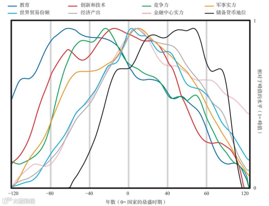 但达利欧的厉害之处在于,他并不是简单对历史周期进行定性,而是总结出了衡量这些兴衰的最重要且具有一致性的指标,并将它量化,以帮助理解和应对当前的事态。