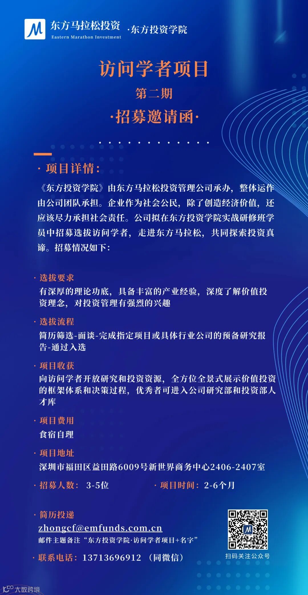 犹记得去年9月,我有幸被选上参与“东方马拉松访问学者”项目,心中无比欣喜。这是我第一次有机会到国内顶尖私募机构近距离观摩学习,深入参与项目研究,机会确实难得。