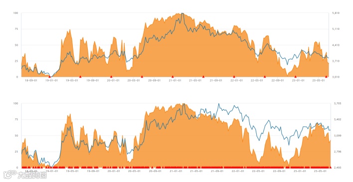 其中沪深300指数上半年小幅下跌0.75%,上证指数在中特估的加持下上涨了3.65%。从估值上看沪深300指数已进入5年20%左右的分位点,有着性价比非常高的配置价值。上证指数上半年走势较强,进入了5年的42%分位,但整体估值仍然较便宜。
