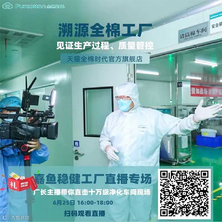 来天猫全棉时代官方旗舰店直播间,厂长主播带你直击十万级净化车间的第一线!