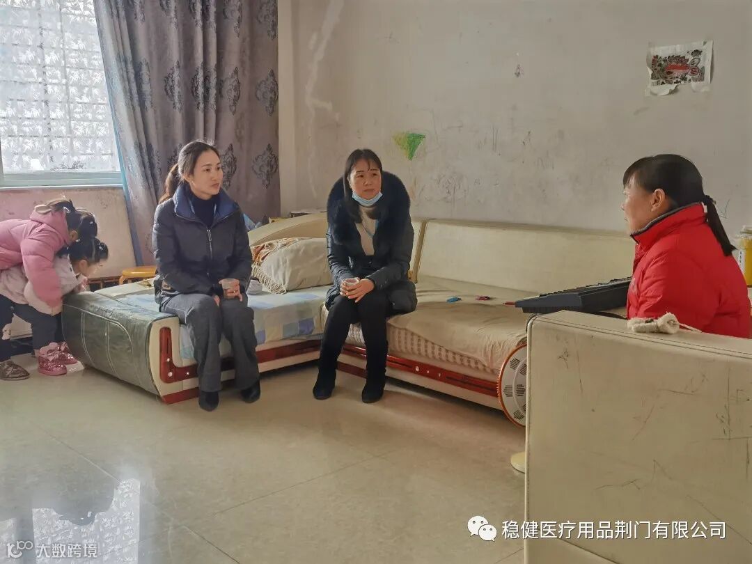 严冬送温暖,关爱系真情。1月25日,在新春来临之际,稳健医疗用品(荆门)有限公司总经理李冬芹携管理者代表陈玉玲及工会主席付琼一同走访慰问了励志员工家属及退休老员工,为他们送上了新春的问候和关怀。