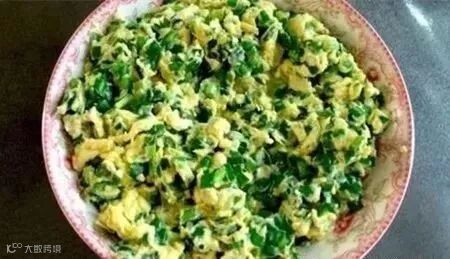 韭菜500克,鸡蛋4枚。将韭菜嫩芽拣净,洗后细切,开水水过;再将鸡蛋打人碗中、用筷子搅匀。