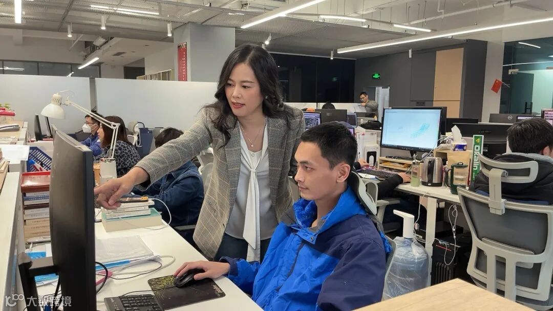 ▲蚁文凝(左)为青年设计师开展项目指导