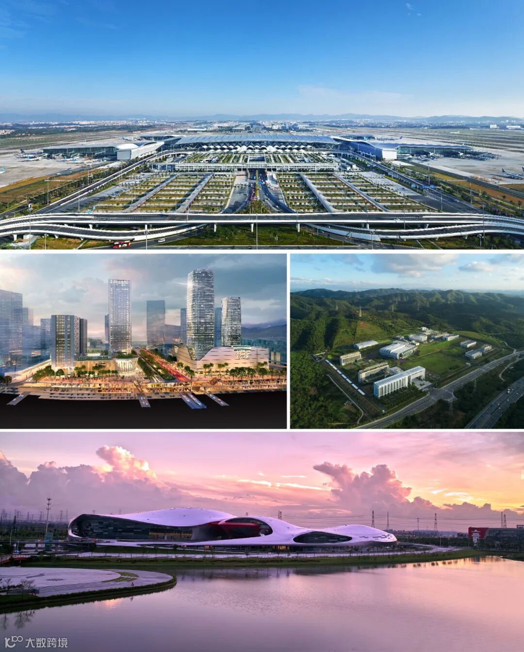 本届广东省工程勘察设计大师代表作品:广州白云国际机场T2航站楼(上)广州万博商务区地下空间(左中)中国散裂中子源(右中)广州亚运馆(下)