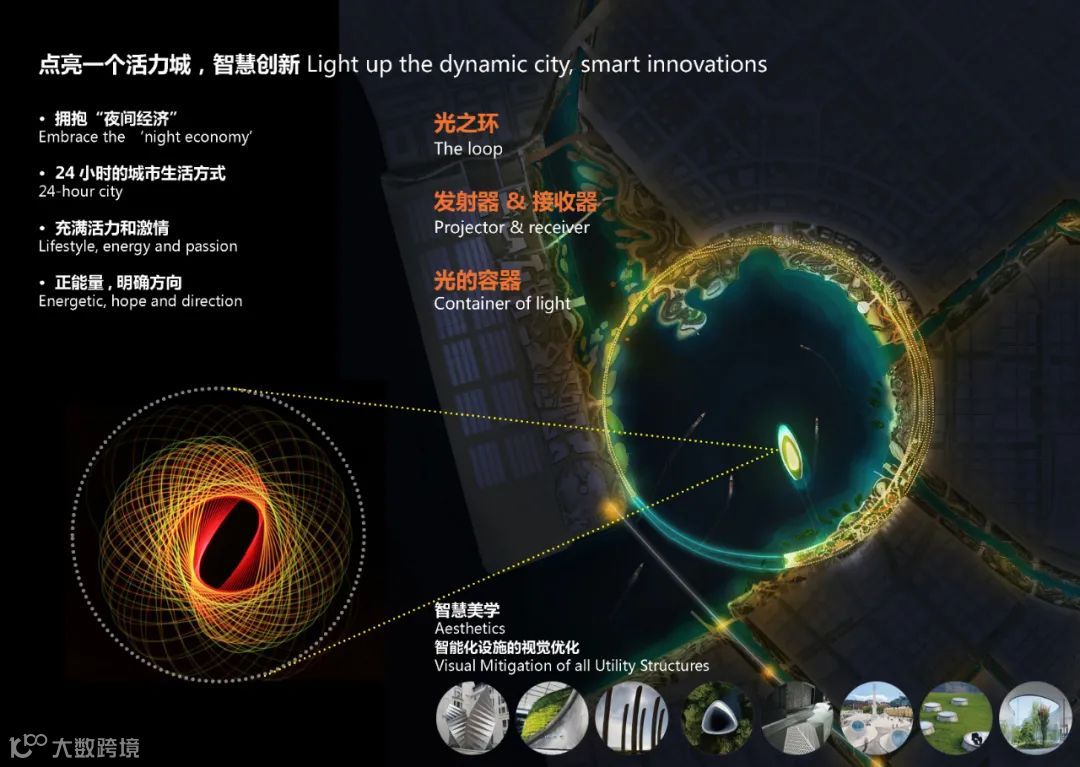“圆梦前海石”是此次概念方案的核心立足点,旨在构建前海向心能量环,打造城市永续发展的能量滨水空间。