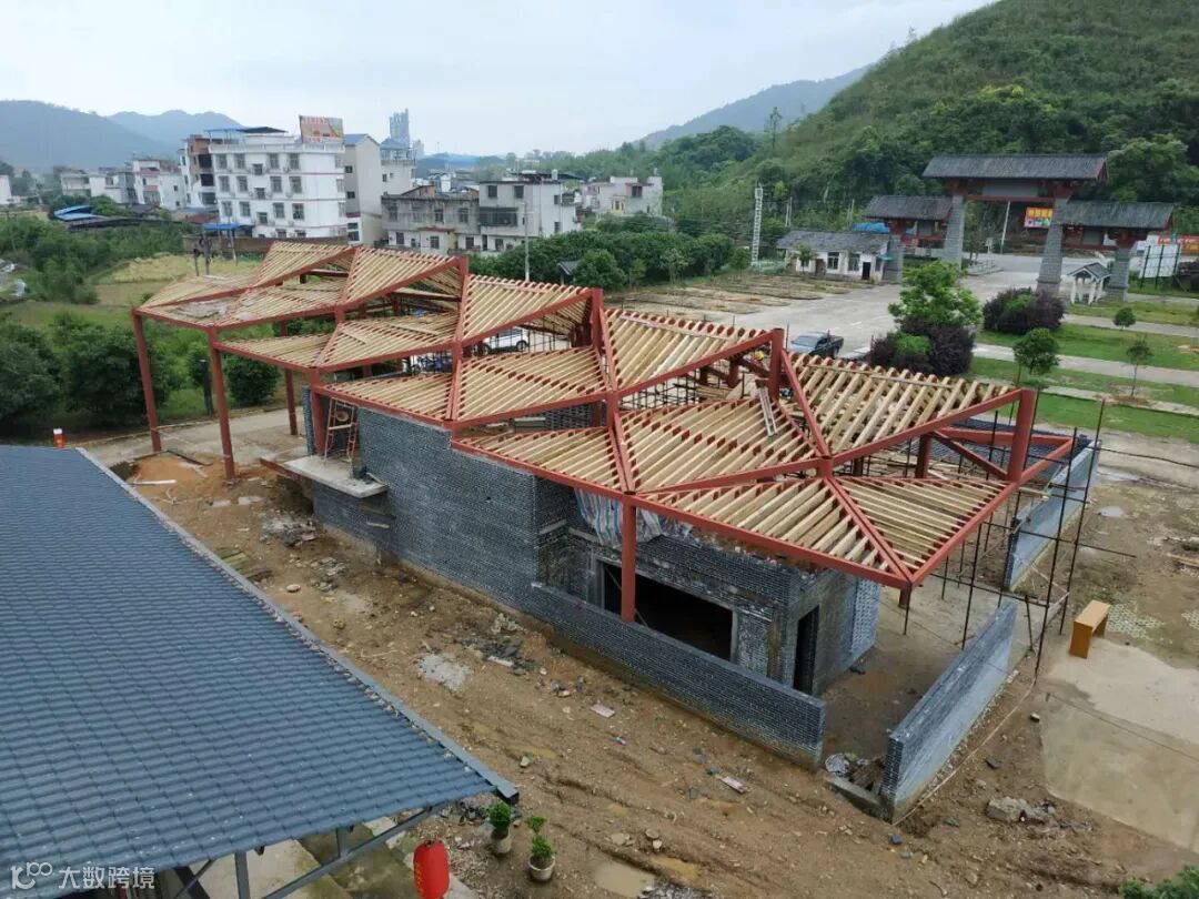 工程虽小,建造过程还是遇到不少问题,设计团队多次在现场协调解决。当地市政府和住建局给予了全力支持,选择了有古建经验的施工方。而钢结构的运用与传统材料的结合,需要施工方边放线边备料边施工。对设计逻辑的理解、构造节点的推敲、材料的定板、收边收口尤其是斜边屋面瓦片的切割及固定,都需要设计和施工双方的密切配合。