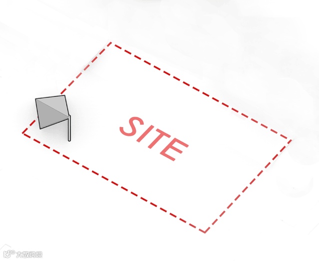 场地背后是一座从西到东升起的山,在场地里的第一感觉是要呼应山势。