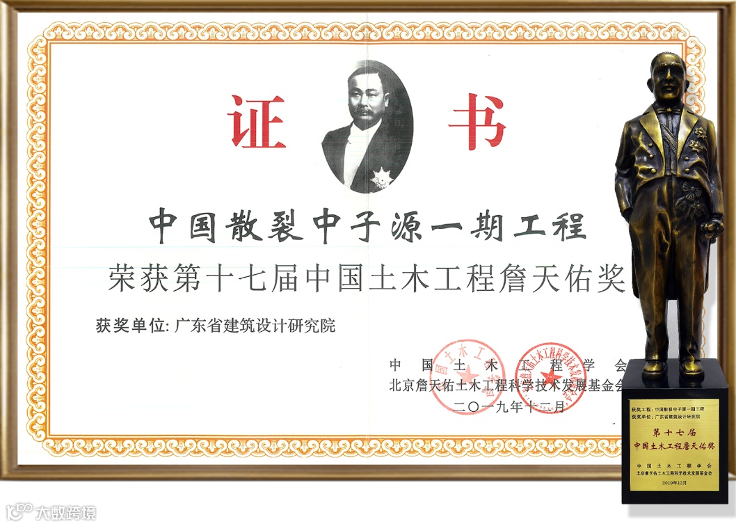 广东省建筑设计研究院有限公司(GDAD)作品中国散裂中子源一期工程,以其在设计、施工、管理等方面的创新性和先进性,成功获得本届“中国土木工程詹天佑奖”。