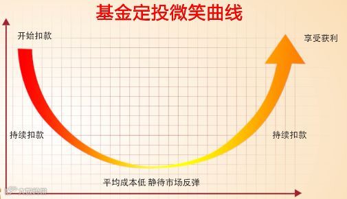 投资者在市场上开始定投,待股市走出一段先下跌后回升的过程之后,在上涨到火力点时赎回,然后把这一段“开始-亏损-收益-赎回收获”的收益率连成一条线,这段弧线就构成了微笑曲线。