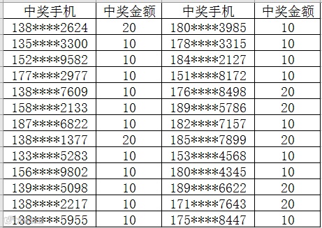 3、中奖金额将于每周五以话费的形式发放到您的中奖手机,届时敬请留意短信