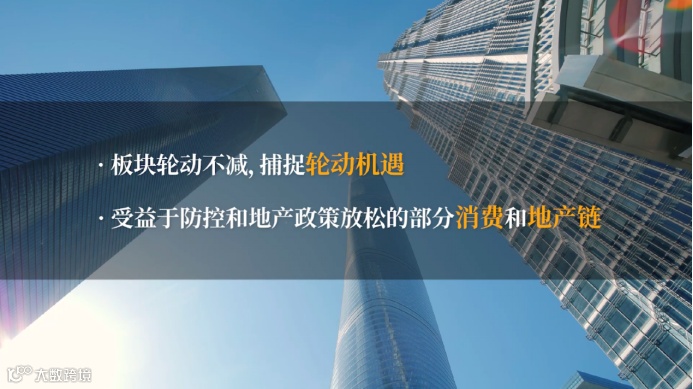 股市轮动或将延续。2022年A股呈现出市场快速轮动、景气策略失效的特征。2023年市场轮动较快的特征或将延续,需要在轮动之中捕捉投资机遇。其中,受益于防控和地产政策放松的部分消费和地产链值得关注;各种产业主题投资,如泛安全领域基本面触底回升的半导体和计算机等领域可能有良好表现的窗口;景气继续得到验证的部分高端制造,如新能源细分行业等值得捕捉;铜、金也将有可能展露出良好发展机遇。