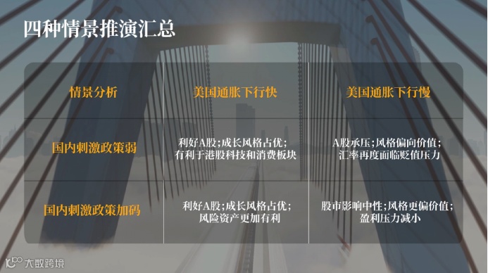 从情形推演来看,2023年A股迎来发展利好是大概率情形。我们对于A股在2023年的表现进行了四种情形推演,其中,国内政策刺激的力度和美国通胀下行的速度——这两个因素是影响A股在2023年表现的核心变量。我们可以看到的是在四种情形之中,A股承压的情形只有一个,其余情形均利好A股,或对股市有中性影响。