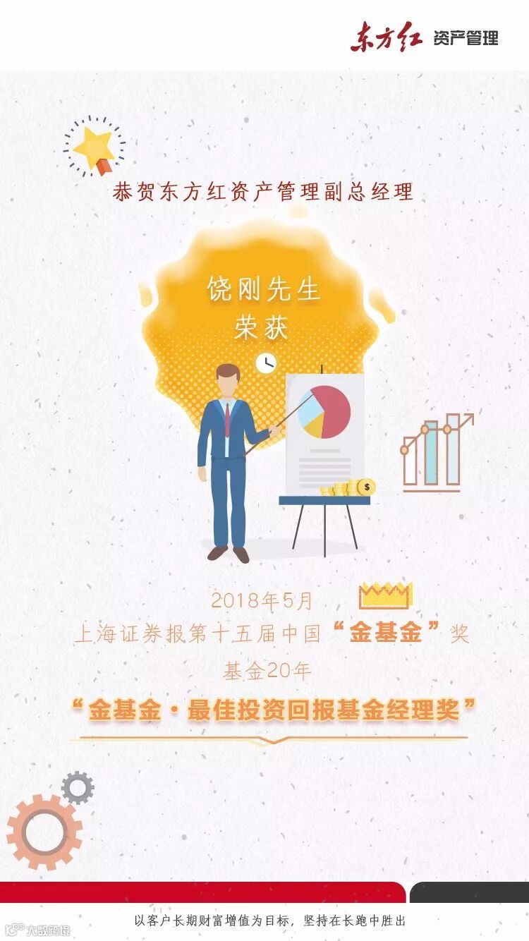 时逢公募基金发展20周年,得益于杰出的投资能力和长期优胜的投资业绩,东方红资产管理副总经理饶刚荣膺基金20年“金基金•最佳投资回报基金经理奖”。