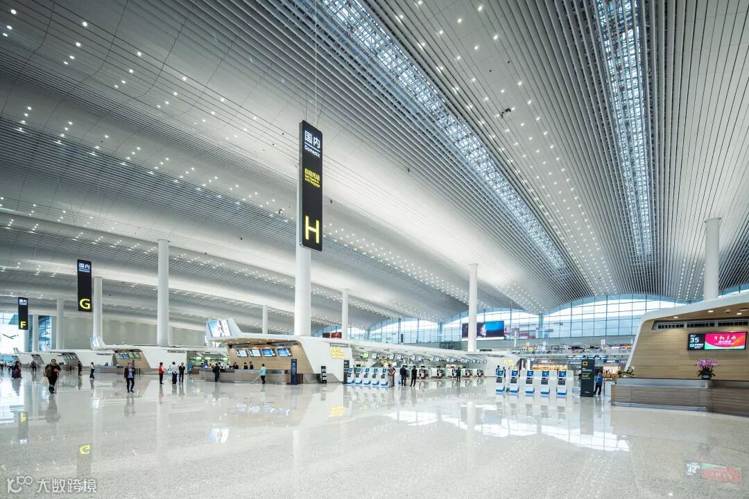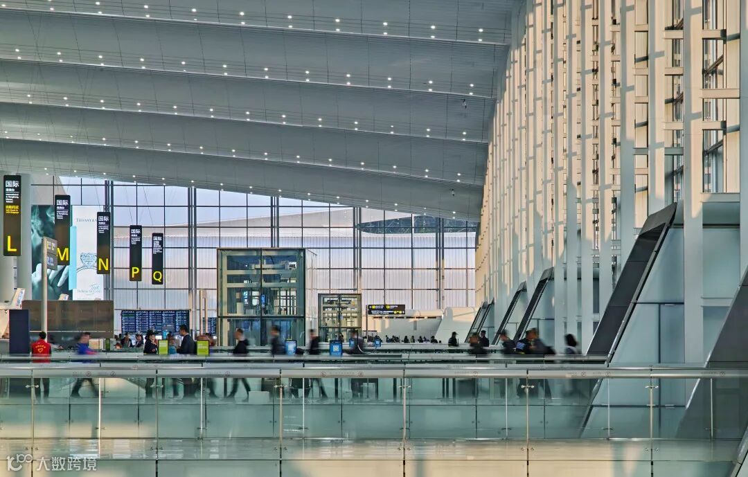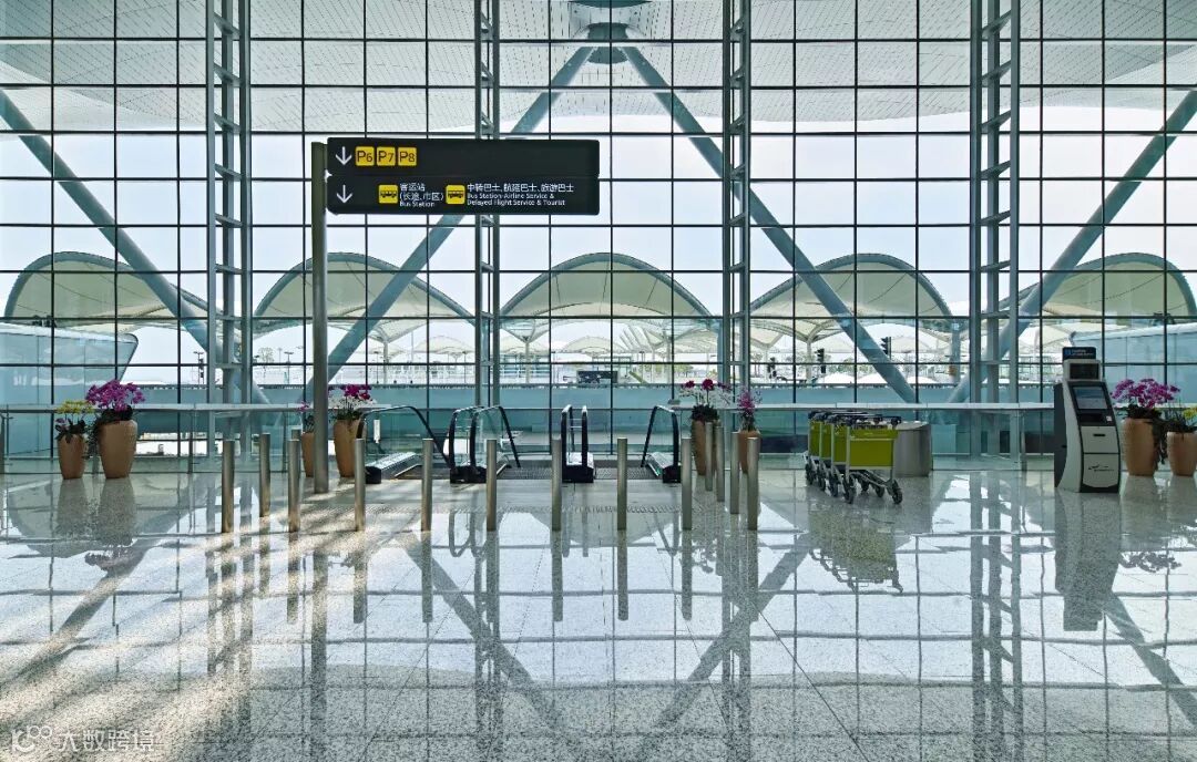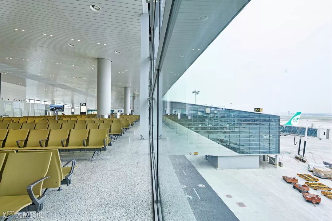 二号航站楼采用“指廊式+前列式”的混合构型,空侧运行效率高、近机位多,航站楼内旅客步行距离适中、国际国内互换方便。