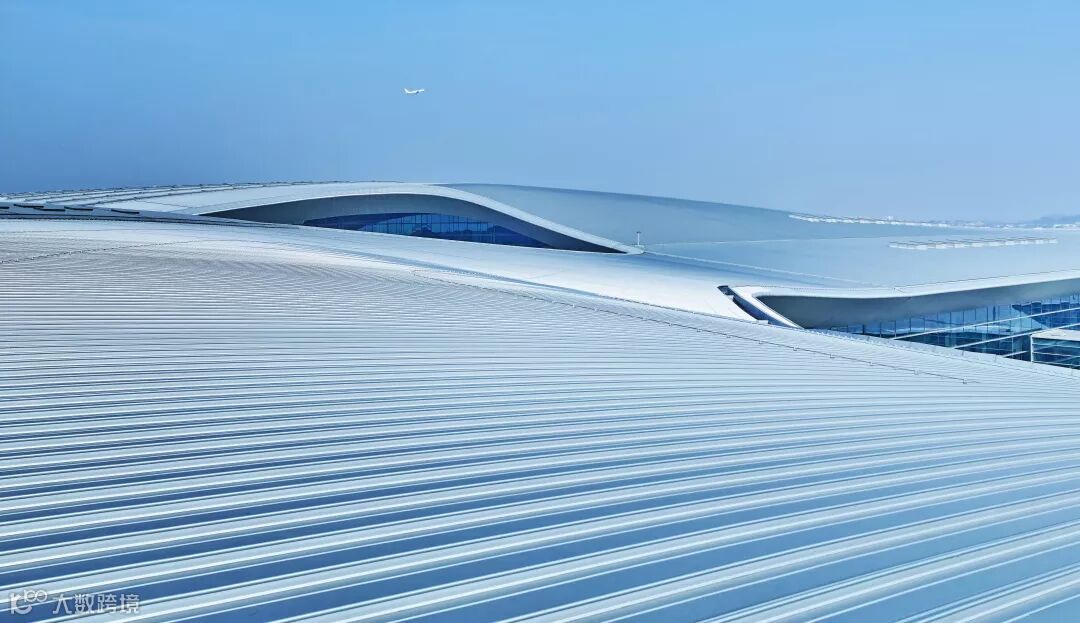 其拱形屋面造型连续流畅、灵动飘逸,在总体形象上一、二号航站楼遥相呼应,形成独一无二的“双子星”航站楼国际机场门户形象。