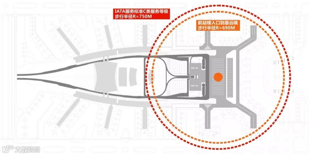 二号航站楼作为超大型航站楼,打造高效便捷流程、营造旅客良好出行体验为核心目标。 采用“指廊式+前列式”混合构型,较好地缩短了大型航站楼的旅客步行距离:旅客从车道边下车后,到最远登机口步行≤700M,步行时间<9分钟。