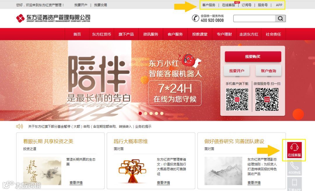 东方红资产管理的官网(www.dfham.com)顶部和右侧的浮窗都可以一键快速找到小红~小红全天候在线为您守候。