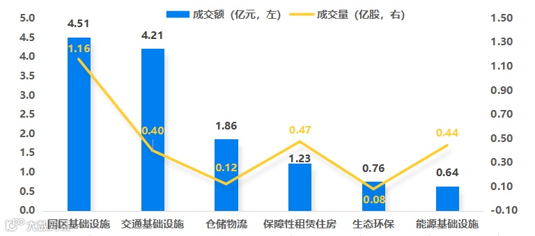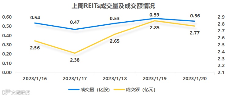 图表5▼上周REITs成交量及交额情况