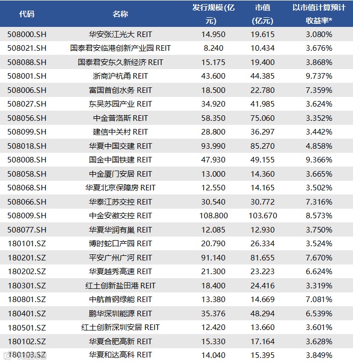 图表1▼已上市24只REITs情况概览